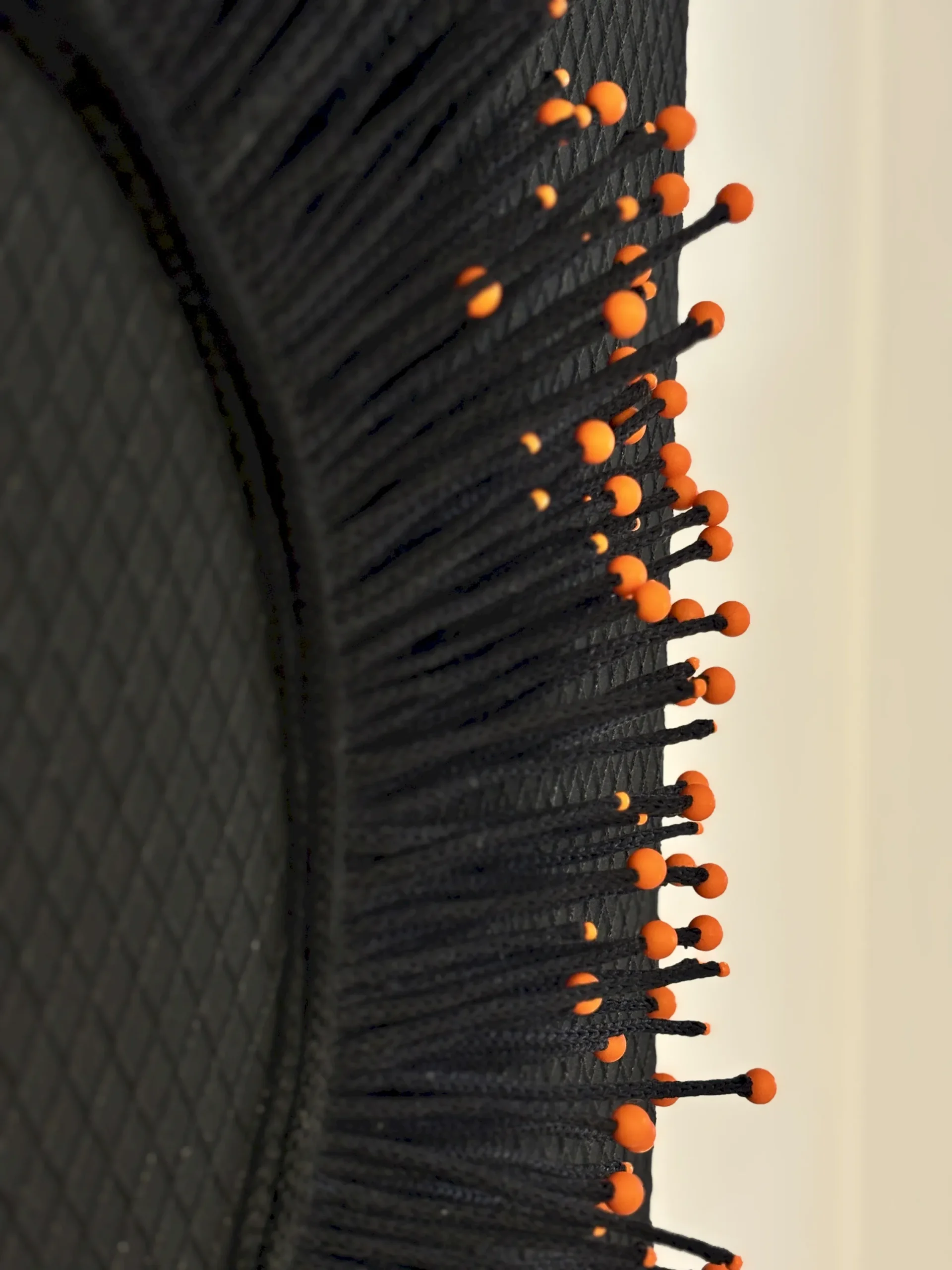 – The core structure is formed from fine black enameled steel wires, chosen for their strength and sleek finish.